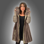 - Giacca visone zaffiro con cappuccio